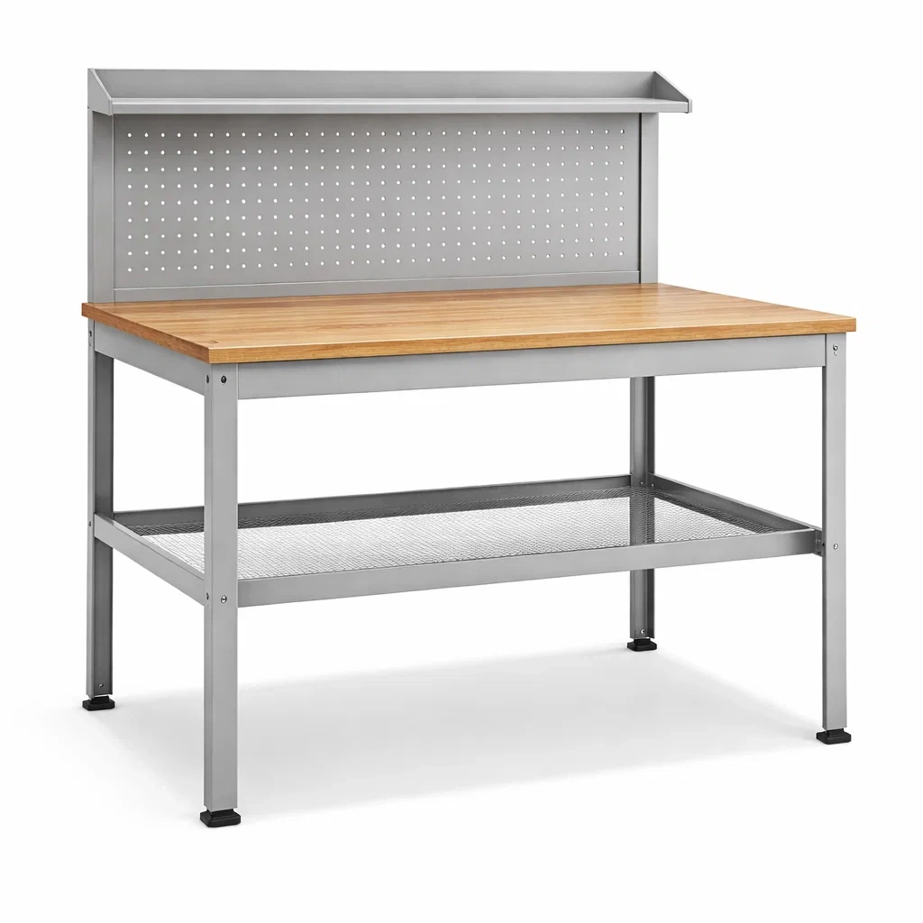 Werkbank stahl holzplatte grau mit schubladen