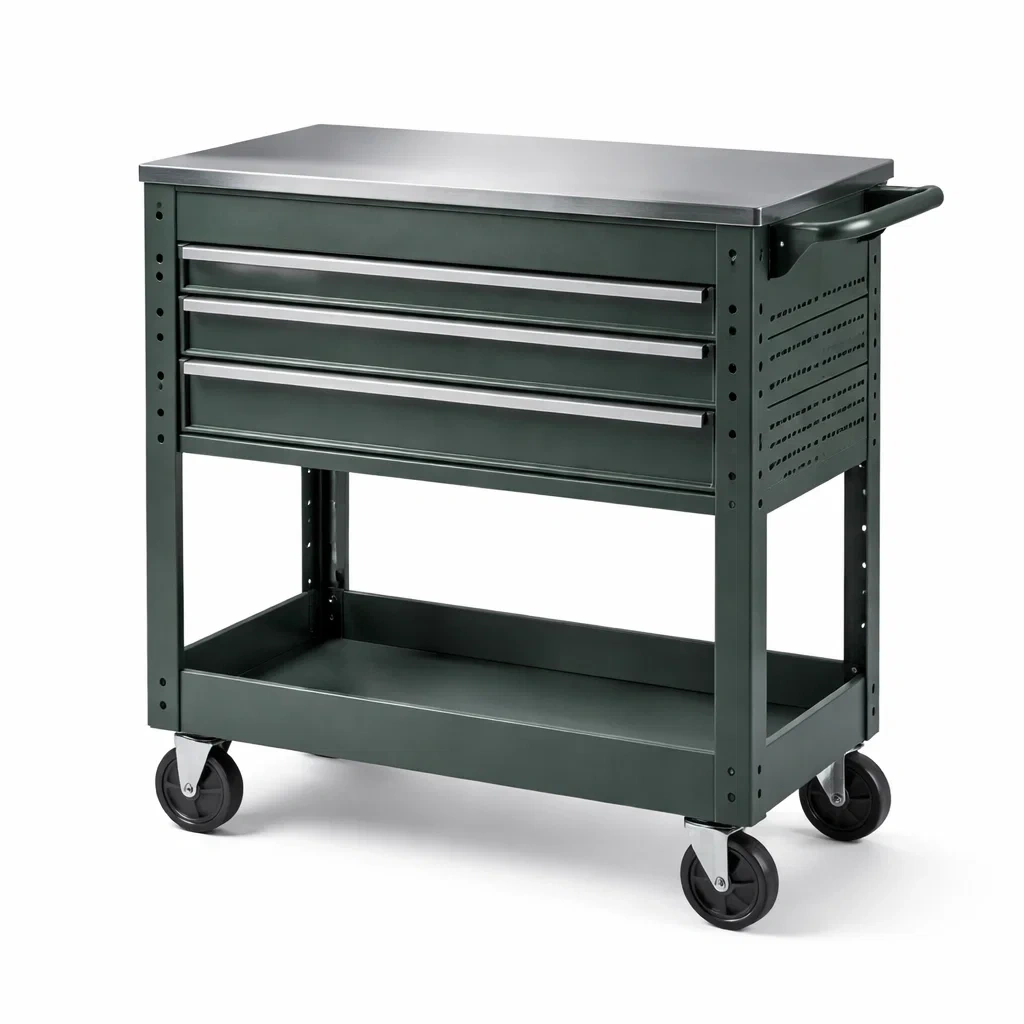 Werkzeugwagen stahl grün mit schubladen und ablagen