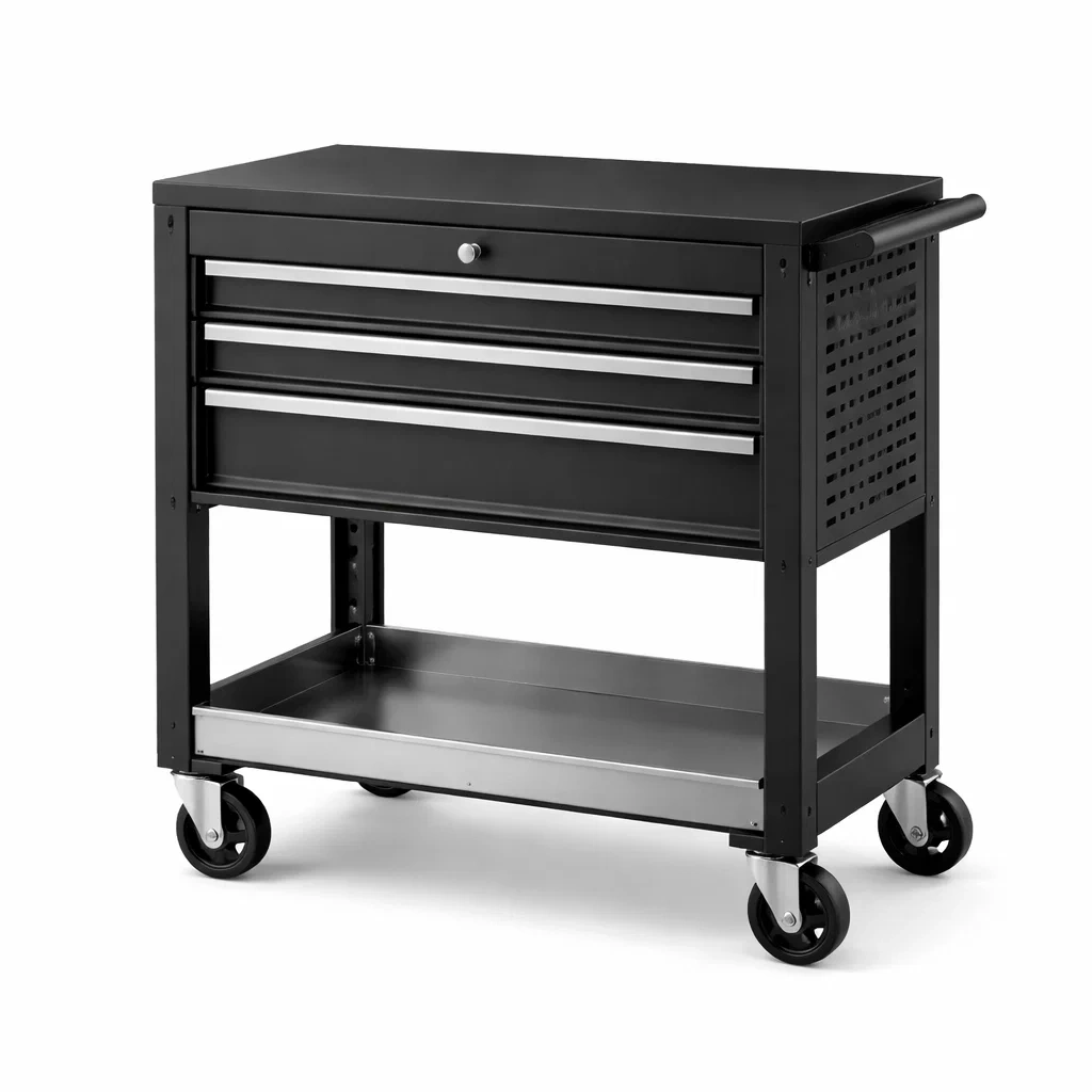 Werkzeugwagen edelstahl stahl schwarz mit rollen